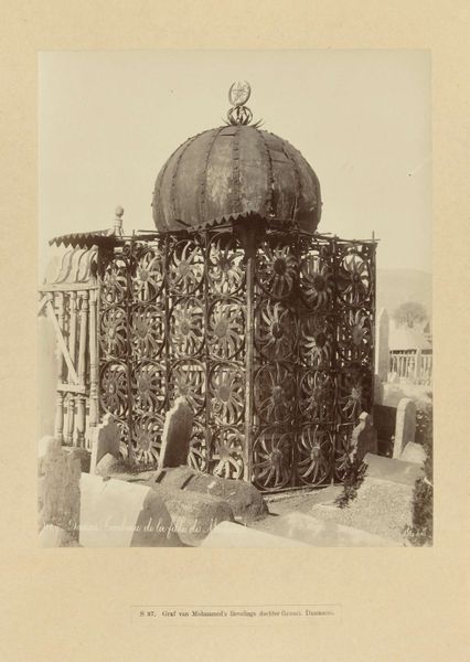 Editor: This is Fèlix Bonfils' albumen print, "Tombeau d'Absalon," from the 1870s. It's…wistful, somehow. Like looking at something monumental but also crumbling, a story etched in stone and sunlight. What strikes you when you look at it? Curator: Wistful is a beautiful way to put it. For me, this image hums with echoes, doesn't it? Echoes of ancient ambition, of time’s relentless caress, and of the very act of witnessing it all through Bonfils’ lens. Look how he captures the light – almost reverentially. Doesn’t it make you wonder what whispers the stone might hold? What dramas has it seen played out beneath that Middle Eastern sun? Editor: Absolutely. And you can see tiny figures in the bottom, humans dwarfed by architecture and time. What's the story behind the tomb itself? Curator: Ah, now that’s where things get delightfully murky! Popular legend links it to Absalom, King David’s rebellious son, though architectural styles point to a later, Roman-era construction. It’s this fascinating blend of perceived history and actual history that I find so captivating. It invites you to question, to layer your own narratives onto what you see. Editor: So, it’s almost a visual game of telephone? History being passed down and transformed. Curator: Precisely! And Bonfils, through his photographic choices, participates in that game, framing it just so, bathing it in that golden light… He’s not just documenting; he’s adding his voice to the story, or perhaps writing his own, separate one, inspired by it. He’s immortalising a tomb of uncertain origin, built who knows when… pretty romantic when you break it down, eh? Editor: I see what you mean! The image becomes its own layer of history then. I definitely feel like I’m going to be pondering the photograph, the tomb, the stories for a while. Thanks! Curator: My pleasure. It's why I find history and images like this so damn romantic! A continual archaeological dig. Keeps life interesting, eh?