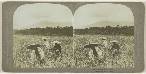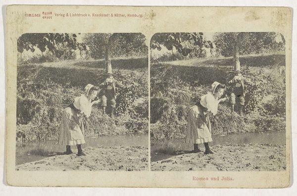 This stereograph, created in 1897 by T.D. Rust, presents a field of daisies occupied by a group of young girls. The daisy, a symbol of innocence and purity, has roots stretching back to ancient mythologies, often associated with youth and new beginnings. Consider Botticelli's "Primavera," where flora heralds the arrival of spring, mirroring the symbolism of renewal and innocence seen here. The daisy, like other floral motifs, transcends mere decoration, acting as a profound carrier of cultural memory. The girls, nestled within the field of flowers, evoke a sense of unspoiled naivety. Yet, observe the contrasting expressions—some faces radiate joy, while others are more reserved, hinting at the complex, subconscious emotional tapestry within each individual. Such contrasts remind us that symbols are never static but are continuously reinterpreted through individual and collective experience. Thus, the daisy field is not merely a scene but a stage where innocence confronts experience, a recurring theme that continues to engage us across centuries.