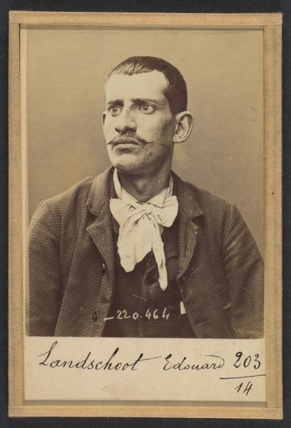 This mugshot photograph, made by Alphonse Bertillon, captures André Sicard, a jeweler and anarchist, on July 2, 1894. The gaze, directed slightly off-center, speaks volumes. We find this averted gaze mirrored throughout history, from Roman portraiture to Renaissance depictions of penitent saints. Originally, direct eye contact signified courage and authority. However, here, Sicard's gaze shifts; rather than defiance, it conveys introspection, or perhaps a profound sense of resignation. The mugshot, as a cultural artifact, echoes the medieval "danse macabre"—a visual reminder of mortality and societal control. This image is not just a record of identity, but a symbol of transgression, a visual encoding of social anxieties. The photograph’s starkness serves to engage viewers on a deep, subconscious level with a non-linear, cyclical progression of this symbol, and how it has resurfaced, evolved, and taken on new meanings in different historical contexts.