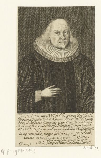 This is Johann Benjamin Brühl's portrait of James Ussher, made with engraving techniques. Engraving is an intaglio process, meaning the image is cut into a surface, here a metal plate, and the incised lines hold the ink. Notice the precision and detail achieved through the careful manipulation of tools like burins and scrapers. The texture of the paper, combined with the varying depths and widths of the engraved lines, create a rich tonal range and visual depth, lending a sense of realism to Ussher's likeness. The social significance of engraving lies in its capacity for reproduction and dissemination of images, contributing to the circulation of knowledge and ideas. The act of creating an engraving is labor-intensive, requiring skilled craftsmanship and patience. Yet, once the plate is prepared, multiple impressions can be made, allowing for wider accessibility to art and information. The combination of technical skill and replicability underscores the complex relationship between art, labor, and commerce in the 18th century. Paying attention to the materials and processes used sheds light on the artistic intentions and the broader cultural context in which the work was created.