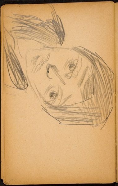 Editor: This drawing by Max Beckmann, titled *weibliches Gesicht* or *Woman's Face*, appears to be a pencil sketch on paper. It feels almost unfinished, like a fleeting thought. What can you tell me about it? Curator: It's important to view this drawing within the context of German Expressionism, which was deeply affected by the sociopolitical tensions leading up to and following World War I. Beckmann, a veteran himself, witnessed firsthand the horrors of war. This, I believe, shaped his portrayal of humanity. This woman’s face, although just a sketch, conveys a certain weariness. Does it evoke that for you? Editor: Yes, the downward gaze and almost skeletal lines give that impression. Is this typical of the way German Expressionists were depicting figures at this time? Curator: Precisely. Artists during this period often distorted or exaggerated features to express intense emotions and psychological states. These choices can be read as a visual outcry against social injustices and the dehumanizing effects of war. Also, remember that Beckmann saw this as something he was jotting down in a sketch book -- so he probably never envisioned this getting the audience that it eventually received in a museum setting. How do you think knowing that affects your perception of it? Editor: That's interesting. I hadn't thought about its initial intended purpose. It almost makes it more vulnerable. Now I'm thinking about the art world, and the politics of display... Curator: Indeed. This drawing's journey – from private sketchbook to public display – profoundly impacts how we engage with its raw emotion. I'm glad this process opened up that avenue for exploration. Editor: Absolutely! I’ll definitely look at Expressionist art differently now. Thanks.