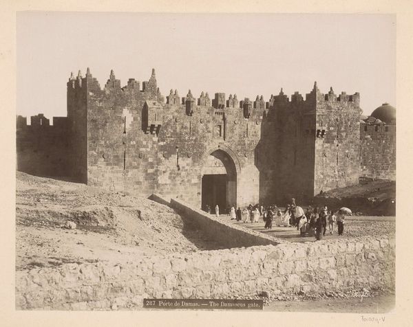 Auguste Salzmann made this photograph of the Damascus Gate in Jerusalem using the calotype process. The image provides insights into the cultural and political landscape of the mid-19th century. Made in 1854, the photograph reflects European interest in the Middle East, particularly the Holy Land, which was driven by religious, scientific, and colonial motivations. Salzmann was commissioned to produce photographic evidence that supported French archaeological research. This image would have been displayed and studied in the context of debates about the history of Jerusalem and the authority of religious texts. The calotype process, known for its soft focus and atmospheric effects, emphasizes the timelessness and historical weight of the architecture. By studying travelogues, archeological reports, and the institutional histories of museums that exhibited such images, we can better understand the complex meanings that this photograph held for its original viewers.