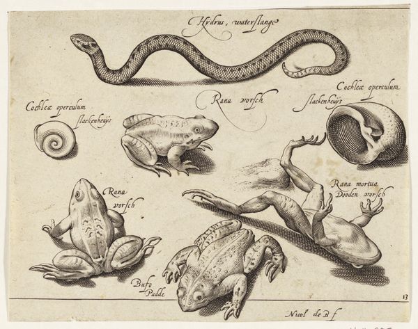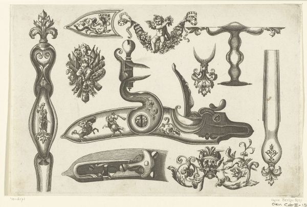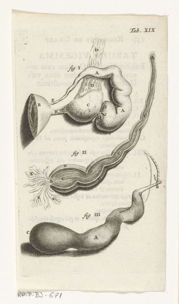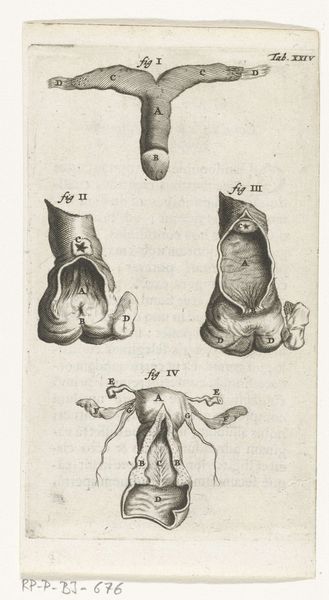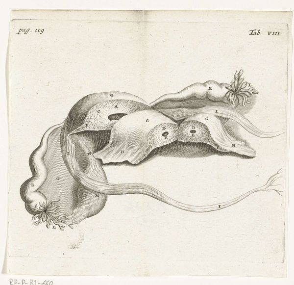 Curator: This drawing, "Anatomische afbeelding van groeistadia van het embryo in de baarmoeder," or "Anatomical Representation of the Growth Stages of the Embryo in the Womb," created around 1672 by Hendrik Bary, captures a vision of early life in the Baroque era. What strikes you first about this engraving? Editor: A bit eerie, isn't it? The detailed rendering and the almost clinical presentation of something so inherently… miraculous. The rendering in ink on paper adds to its otherworldly atmosphere. Curator: It does possess a certain detached curiosity. Bary was, after all, working within a tradition that was just beginning to explore the inner workings of the human body with newfound scientific zeal. I see such ambition in the lines, how he articulates form with just line work. Editor: Absolutely, and it’s precisely that intersection of science and craft that fascinates me. The labour involved in meticulously engraving these plates, reproducing and disseminating knowledge. This image speaks volumes about the material conditions of scientific inquiry at the time. Each print is a testimony to human knowledge and skill. It shows the transition from early pen and ink illustrations, towards reproducible printing methods. Curator: There's also something deeply imaginative happening here. Consider the stylized womb. It is, after all, an artistic interpretation rather than a direct observation in our modern sense. These "growth stages," how he conceptualizes them, strikes me as profoundly beautiful in its reaching beyond strict science. Editor: True, and those swirling, baroque embellishments around the central image. But don't mistake "stylized" for naive. Bary wasn't just arbitrarily decorating; he was participating in an economy of images. The accuracy and appeal influenced the distribution. Curator: It’s quite breathtaking to consider that these were visualizations informing the understanding of life itself. Each carefully etched line offered new possibilities and ways of comprehending creation, still imbued with mystery even with a scientific approach. Editor: It does offer a chance to see how knowledge was literally built up, layer by layer, using the tools and resources at hand. Every impression a tiny revolution in how we perceive our own making. Curator: Ultimately, it's about the fascinating dance between empirical observation, artistic interpretation, and the birth of a new science of ourselves, isn’t it? Editor: Precisely. And how the value of a print goes far beyond aesthetics and reveals material realities that defined scientific understanding for centuries.