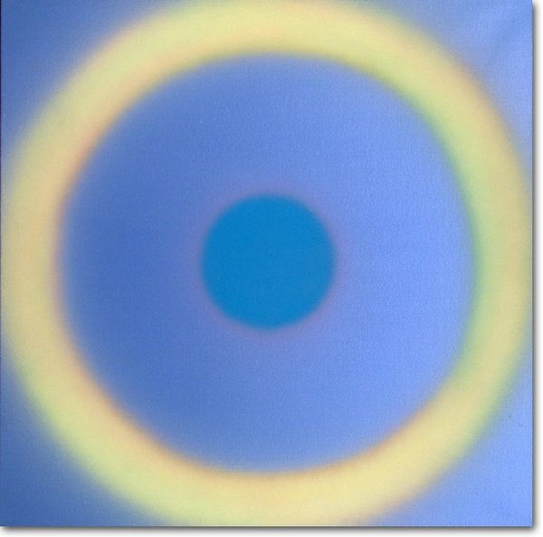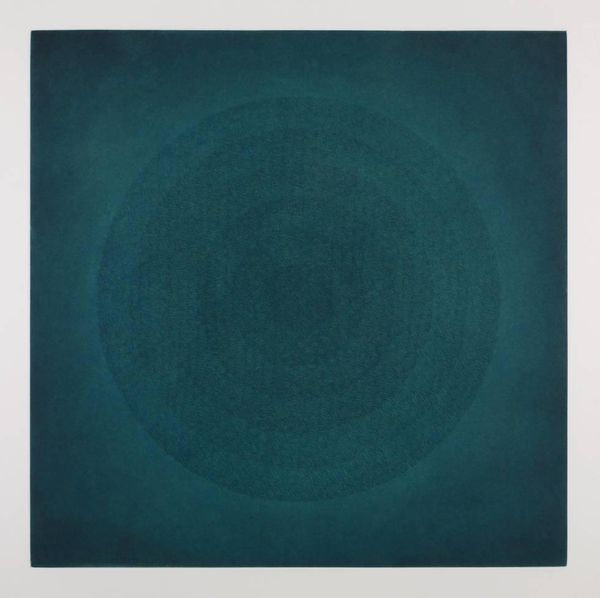 Clarence Holbrook Carter made this 'Teal Mandala' and right away I'm thinking about the layering of color, this build up of the image as a process, that feels almost meditative. The surface has a smoothness and a flatness to it, but within that, there's a real depth that comes from the varying transparency of the teal. It’s not just about the colour itself, but the way it interacts with the paper. See how the shapes at the top edge of the black bar are not quite perfect? This makes me think of the hand and the decisions that are made in the studio, slowly, and with the confidence that comes through working something out. This piece reminds me of the work of Agnes Martin, in the sense of its simplicity and clarity. Both artists share a concern with inner space. You know, art's like a big conversation, everyone's chipping in. It’s all about feeling and looking. What you get from this might be different from what I get, and that's just as it should be.