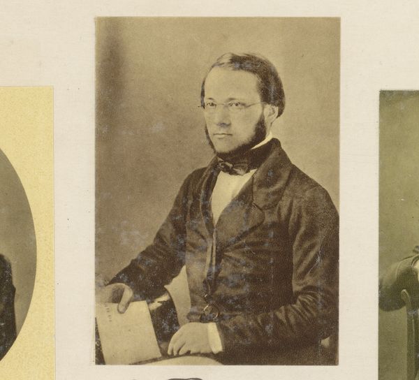 Curator: The somber weight of history feels palpable in this stereograph by Mathew Brady, portraying Abraham Lincoln. Editor: It's striking how the dual image lends a strange depth and almost hallucinatory quality to the photograph. The tones are muted, which emphasizes the gravity of the subject. Curator: Brady captured Lincoln at a pivotal time, during the Civil War, shaping and preserving Lincoln’s image for future generations. These portraits helped solidify Lincoln's place in the American consciousness. Editor: The meticulous detail is captivating; see the minute textures of his suit, the carefully controlled lighting. It's less about capturing a likeness and more about constructing an idea of leadership. Curator: Indeed. Photography in this era was crucial for disseminating political imagery and influencing public perception. Brady's gallery played a key role in this process. Editor: And the repetition! It's like a doubling of the man himself, forcing us to confront his presence, his otherness, from two slightly different perspectives. Curator: Ultimately, Brady's portrait immortalizes a leader, but it also reveals the power of photography to shape history and collective memory. Editor: A powerful piece indeed—a reminder that even in stillness, images can resonate with profound movement.