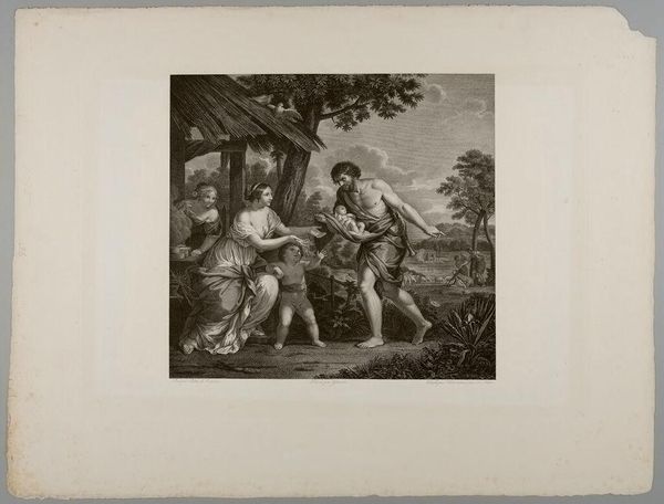 Editor: Here we have "Arcady" by Albrecht Christoph Reindel, its date unknown. It depicts figures examining what appears to be a tomb. I find the scene quite melancholic, almost haunting. What do you see in this piece? Curator: Haunting is a great word for it! The figures seem caught between admiration and sorrow, don't they? It reminds me of a dream, searching for meaning in something lost. The composition guides our eyes to the inscription, prompting the question "What is it we are searching for?" Perhaps answers lie in the past, or maybe in a future yet unknown. Editor: So, the artwork prompts us to reflect. I hadn't considered that perspective. Curator: Art often serves as a mirror, reflecting our own questions and feelings back at us. Don't you think? Editor: Absolutely. Thanks for helping me see that!