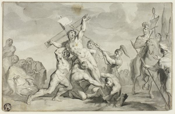 Giovanni David created this engraving, "Mars and Venus in the Bath," during the late 18th century, a period marked by significant social and political upheaval in Europe. This print reproduces a fresco by Giulio Romano in the Palazzo del Te in Mantua. David’s print offers an insight into the cultural fascination with classical antiquity during the Neoclassical era. The depiction of Mars, the god of war, and Venus, the goddess of love, engages with classical mythology and its ideals of beauty and heroism. The image invites us to consider the role of mythological subjects in shaping cultural values and artistic expression during this period. The Palazzo del Te itself, commissioned by Federico II Gonzaga, speaks to the intersection of art and politics, where artwork served to legitimise power. By studying archival materials, contemporary critical reviews, and the patronage networks of the time, we can gain a deeper understanding of this artwork's historical and cultural significance.