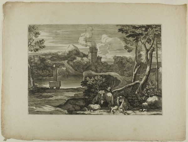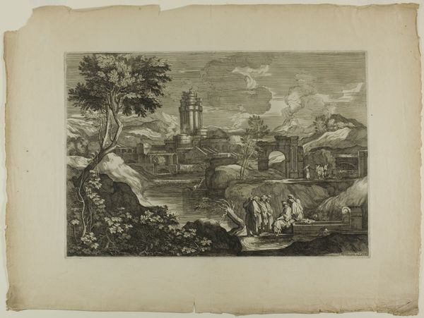 Sebastien Bourdon’s etching captures two carters struggling to pull their cart across a shallow river. Above them, looming over the landscape, sits a fortified castle, a potent symbol of power and authority. Consider how the image of laborers struggling against the elements has recurred throughout art history, embodying themes of perseverance and the human condition. The image of the castle has its roots in antiquity, often representing not just physical power but also moral or spiritual authority. One may recall similar structures in medieval tapestries or Renaissance paintings, each instance carrying its own specific cultural and political weight. Yet, the subconscious draw to such images remains constant. These images tap into our collective memories, evoking primal feelings of safety, ambition, or even fear. Bourdon uses the symbol of the castle to express these feelings in a way that engages viewers on a deep, subconscious level. It is through this cyclical progression that the symbols evolve. The image of the castle, once a straightforward representation of power, can become a symbol of nostalgia, oppression, or even aspiration, as it resurfaces, evolves, and takes on new meanings.