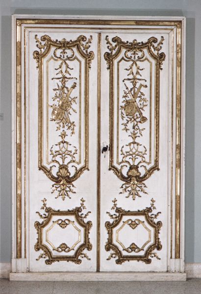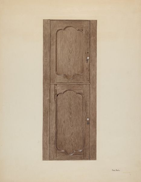 Curator: I find myself intrigued by this four-panel door, known simply as "Door." It dates back to 1545-1555, a time of great artistic flourish during the Italian Renaissance, and it's held in the collection of the Metropolitan Museum of Art. What springs to your mind? Editor: It feels incredibly somber. There’s a darkness, almost oppressive, to it despite the decorative carving. It makes me think about secrets, and thresholds not meant to be crossed. The grain in the wood looks very textured. Curator: That sense of seriousness is interesting, given the Renaissance was also about celebrating beauty and humanism. Consider the function, though – a door signifies both enclosure and passage, marking physical and perhaps metaphysical boundaries. Notice how the Italian Renaissance loved symmetry and ornamentation; the carefully crafted carving adds another layer of meaning to something functional. Editor: Definitely, that repetitive scroll pattern is mesmerizing, but it almost traps the eye. It feels less celebratory and more like a decorative cage. The central boss, these protruding, rounded elements – they seem like stylized eyes watching the potential entrant, a permanent sentry guarding a private world. Curator: Precisely. That recurring motif channels established Renaissance symbology: elements derived from acanthus leaves intertwine to indicate rebirth and flourishing. Consider, then, how that symbolic intention merges with the functional sternness. Could the “Door” embody something deeper? Editor: I suppose it speaks to a complexity, the Italian Renaissance was about more than just simple joy; there’s intellectual tension and sometimes even spiritual torment under the beauty. To open this door could be to open up Pandora's Box. A fitting artistic puzzle. Curator: Indeed. And to reflect on a functional object – a door! – through such layers of symbolism is profoundly enlightening. It invites one to consider both passage and prohibition within Renaissance thought. Editor: Absolutely, I'll never look at a door the same way again. It really drives home that every threshold is more than just getting from A to B. It can hold more than first meets the eye.