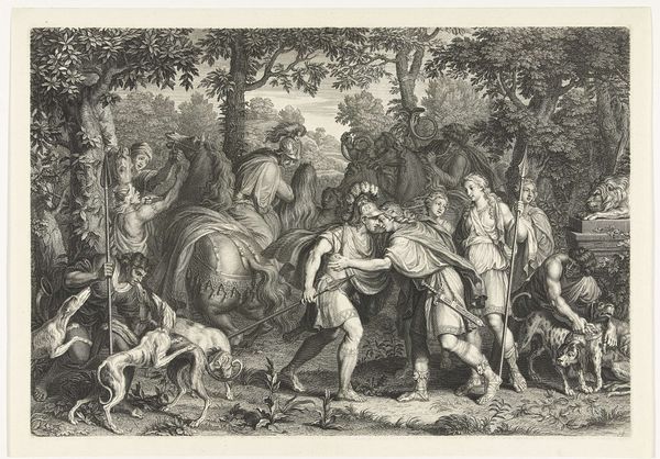 Bernard Picart created this engraving, Jacht op het Caledonische zwijn, or Hunt for the Calydonian Boar, sometime between 1696 and 1733. Here, the artist depicts a scene from classical mythology, one that would have been very familiar to his Dutch audience. The image shows a group of male heroes gathered around the huntress Atalanta as they pursue a monstrous boar sent to wreak havoc on the kingdom of Calydon. Note how Picart, working during the Dutch Golden Age, a period of relative peace and prosperity in the Netherlands, emphasizes the more civilized aspects of the story. Though the hunt is violent, the hunters are presented as noble and courageous, embodying the values of a prosperous and stable society. To fully understand Picart’s work, we can consult not only classical texts, but also contemporary sources such as emblem books and festival books, which reflect the ways in which classical stories were used to convey social and political messages. By studying these sources, we can gain a deeper appreciation of the role of art in shaping and reflecting the values of its time.