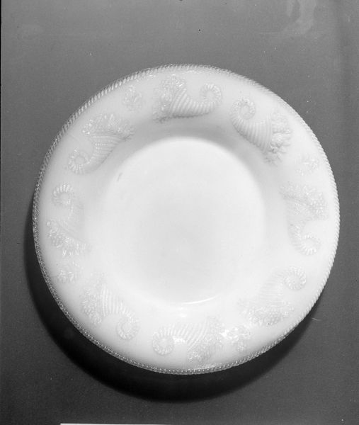 Curator: Standing before us is a porcelain plate crafted between 1729 and 1739 by the Clérissy Manufactory. You can find it on display here at the Metropolitan Museum of Art. What strikes you initially about this object? Editor: Oh, it's surprisingly delicate, almost ethereal. Despite its everyday purpose, there’s a fragile beauty about it. It whispers of elegant dinners and whispered conversations, all filtered through centuries of gentle handling. Curator: Indeed. Porcelain production, especially during this period, involved intensive labor. Sourcing the right clays, the complex firing processes, the hand-painted decoration…it was a true intersection of artistry and industry. Look closely at the rim, the repeating patterns. Editor: Those patterns... they feel both restrained and exuberant. It's a controlled wildness, if that makes sense. And that heraldic crest, so prominent! Who might have used this plate, I wonder? Were they proud, haughty, secretly yearning for a different life? It's tempting to invent their stories. Curator: Well, such plates often displayed family crests to signal status and lineage. Consider the raw materials—where did they source their porcelain clay? What were the working conditions for the artisans? These objects carry within them traces of economic systems, colonial trade routes, and hierarchical social structures. Editor: Ah, yes, the embedded stories in the clay itself. I love the idea that something seemingly simple can hold so much. For me, it's like finding a seashell and hearing the ocean's roar – this plate is a portal. Curator: Absolutely. We must remember that even the most decorative of objects also function within—and are shaped by—their economic and social context. This "Plate," far from being simply decorative, becomes a potent lens through which to examine the world of the 18th century. Editor: So well put. It really underscores how deeply interconnected art, craft, and social history truly are. Looking at it again, I'm struck anew by that simple curve, that ring around its edge. It's a small, quiet marvel.