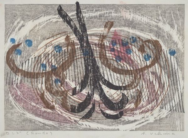 Curator: Mark Rothko's *Untitled [verso]*, made with watercolor, dates from around 1944 to 1946. Editor: There's a definite somber mood here, a kind of aquatic gloom with these ambiguous forms suspended in it. The gray watercolor wash sets the stage. Curator: These shapes are characteristic of Rothko’s move into biomorphic abstraction, the phase preceding his signature blocks of color. It calls up imagery from his past, influenced by mythological themes as well as experiences related to emigration. Do you get any such associations? Editor: Associations are tricky. However, I’m interested in how Rothko is employing the drawn line here. Note the way he uses contrasting blue and red to energize what is actually a very tight compositional field, bisected horizontally and filled with quasi-organic motifs. The shapes feel almost embryonic. Curator: That tight field also gives us the sensation of claustrophobia, echoing the feelings that his family was feeling with so much discrimination happening in the world and Rothko's fleeing from Russia. And the vertical emphasis reinforces our connection to these emotional forms. I sense primal imagery as well; something timeless. Editor: Perhaps, but those floating calligraphic forms owe quite a debt to European Modernism—the automatic writing of the Surrealists and Miró in particular. The palette here may feel grounded, but look at the confident draftsmanship. The lines move freely across the support. Rothko lets the watery medium do so much of the talking, creating transparency where forms overlap. Curator: Precisely! We are peering beneath surfaces into other states. Those seemingly spontaneous lines are actually highly evocative. They serve as vestiges of memory. Consider that single bar across the pictorial space as representative of an emotional blockage, like a dam ready to burst. Editor: Well, considering it now, the picture plane works as a conceptual space where Rothko explores the very essence of abstract forms—that space becomes his theatre of forms. It offers a vital glimpse into Rothko’s visual thinking before he moves on to those familiar expanses of pure color. Curator: Absolutely, seeing it this way helps appreciate Rothko’s vocabulary—how line, form, and symbolism can articulate human experience so effectively. Editor: It's certainly taught me to view Rothko's mature works from an alternate perspective, considering these emerging arrangements of form and line within abstraction's evolving syntax.