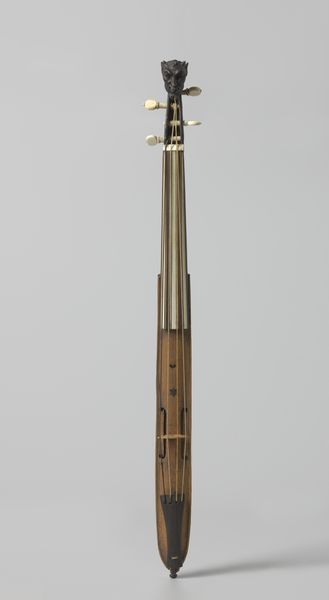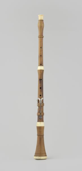 Editor: Here we have a "Yuping Xiao," made sometime between 1885 and 1895 by Zhishan Zheng. It's a delicate, upright flute crafted from wood. It seems very simple and austere in its design. What strikes you most about this object? Curator: I see a direct connection to the earth in the use of bamboo for this flute. Its materiality speaks volumes. The selection of bamboo isn’t just practical, it's a conscious engagement with the natural world. We need to consider the labor involved in harvesting, preparing, and shaping the bamboo. It is all about materiality! Editor: So you're seeing beyond just a musical instrument. Can you elaborate on the production? Curator: Think about the socio-economic conditions that determined access to this type of craft. Who was involved in its creation? The musician is part of it, but who sourced and treated the bamboo, who added the calligraphy? What does this object tell us about the relationship between art, labor, and consumption in late 19th century China? How does this relate to trade? Editor: The blue chord tied to the bottom seems ornamental; how do you interpret this, knowing how you approach art? Curator: Even the blue chord plays into it! Its material speaks about trade networks and craft production too. It’s not just about decoration; it's about how different materials converge in a single object, each carrying its own story of production and exchange. I ask myself: what did craft mean at that time? Where does musical instrument making meet art? What status did the craftsperson have? Editor: This makes me rethink how something seemingly simple has layers of complex information embedded in it! Curator: Exactly! It challenges traditional ideas about what constitutes 'high art'. Examining this object through a materialist lens reveals hidden histories of labor, trade, and social structures, just by examining its making!