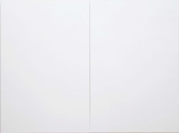 Curator: Peter Downsbrough’s piece, simply titled 1. 4, presents two sets of lines against a stark white background. Editor: It feels… remarkably empty. The composition is so minimal, it almost dares you to find something meaningful. Curator: Downsbrough’s work often engages with the urban environment. His lines can be seen as architectural fragments, disrupting the clean gallery space. Editor: I see the linear forms as basic geometric shapes, almost linguistic. The negative space creates a tension, like a silent conversation between the lines. Curator: This piece, among others, has often been interpreted as a critique of consumerism and the commodification of art itself. Its bareness goes against the spectacle. Editor: Perhaps. But the beauty, if one can call it that, lies in its reductive form. It highlights the fundamental elements of art: line, space, and perception. Curator: Ultimately, its value rests in the questions it poses about art’s role in society, about what constitutes art in the first place. Editor: An exercise in paring down to the essential, allowing viewers to project their own narratives.