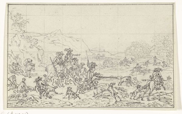 Curator: Let’s take a closer look at this artwork before us titled "Landscape with a Steep Cliff, Large Version." Created between 1622 and 1625 by Hercules Segers, it employs ink and etching, showcasing the artist’s incredible attention to detail. Editor: Wow, talk about atmosphere! This image feels haunted. The landscape's barren, almost lunar, with that tiny figure lost in the immensity. It’s brooding. Curator: Indeed. Segers possessed an extraordinary ability to capture the sublime. Notice how he masterfully manipulates ink and etching techniques to suggest vastness and geological drama. This particular composition also contains a subtle interplay between darkness and light. The human figure almost seems dwarfed by the scale of nature. This may mirror his internal state, or even the position of the Dutch identity in that time. Editor: That tiny human really hits me, knowing now when it was created. It’s as if humanity’s potential is being questioned by the sheer weight of the Earth. It is quite poetic, almost romantic. What I see are shadows: loss, despair, and doubt...But hope remains too, tiny in its size, but existent! Curator: The cultural and emotional resonance lies in this delicate balance, the universal dance between despair and a yearning for something beyond the horizon. His landscapes were unique, almost otherworldly at times. Editor: Right. There’s a very raw quality to Segers' vision. He isn’t simply portraying the scenery; he’s evoking an emotion— a deep melancholy that somehow transcends time. I am transported back to moments in time when I myself felt this lost. Curator: It echoes a yearning found across cultures throughout history – a feeling rooted deeply within our human psyche. Editor: Agreed. Ultimately, what strikes me is that it has such relevance, still today, generations later. Segers definitely managed to leave his mark! Curator: He truly did. This exploration of psychological space alongside natural grandeur offers enduring insights into what it means to be human within an unfathomable universe.
