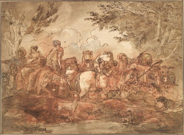 Editor: This is Eugène Delacroix's *Lion Hunt*, an oil painting from 1860. It’s... chaotic, isn't it? All these figures tangled up. What draws your eye when you look at it? Curator: I'm struck by the raw materiality of it all. Look at the visible brushstrokes – the sheer physicality of the paint application. It speaks to a certain frantic energy, almost like Delacroix is wrestling with the very materials to capture this hunt. Consider the source of his pigments. What minerals were ground down to create these vibrant yet earthy tones? How did the availability of materials influence his palette? Editor: That's a different way to look at it. I was just thinking about the scene itself. Is this something he might have actually witnessed? Curator: Perhaps, but I'm more interested in what the making of this image signifies. The romanticism here isn't just in the subject matter, but embedded within Delacroix’s approach to labor. The canvas becomes an arena, mirroring the hunt itself. It’s about production – the social production of this romanticized vision of nature through the artist’s labor and the exploitation of materials. How are our contemporary tastes reflected by this historical object, and how is its making relevant to contemporary society? Editor: So you're saying it’s less about the lions and more about the…the *act* of painting it? Curator: Precisely! Think about the social status attached to artistic labor at the time versus the laborious realities of extracting and refining pigments. There's a definite disconnect, wouldn't you agree? The beautiful scene obscures a whole chain of material production and social inequality. Editor: That’s given me a lot to think about. It makes me want to investigate the chemical composition of his paints! Curator: Exactly! Art history shouldn't exist in a vacuum. By examining the materiality, we engage in the very process through which history and culture gain meaning.