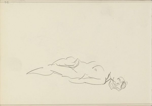 Curator: We have before us Isaac Israels' "Zittende jongen," made sometime between 1875 and 1934. Editor: It's a pencil drawing of a seated boy, very minimal. It seems almost like a quick study, lacking any refined details. What are your first thoughts when you see this piece? Curator: I'm immediately drawn to the economy of the line, how Israels is able to suggest form and weight with such a minimal deployment of material. This pencil, mass-produced and readily available, becomes a tool for observing and recording the everyday. Think about the social implications. Who had access to pencils and paper, and who was being represented? Is this a depiction of leisure? Editor: That's interesting, thinking about the pencil itself. I hadn’t considered its role. The sketch looks incomplete, a fragment, really. Curator: Precisely! And what does this fragment tell us about the artist's process? Was this intended as a finished piece, or was it a preliminary study? The very act of drawing with pencil, unlike, say, painting with oils, lends itself to quick, iterative exploration. The availability of materials like this shapes what artists can even conceive of making. Notice also, it lacks heavy shading and complexity. Editor: So, you are saying the materials and the process behind them influenced the work, right? Do you think he cared whether this work was considered 'high art' at the time? Curator: I wonder if those categories are even useful here. The drawing troubles boundaries by demonstrating how everyday materials are useful beyond mere functionality; they inspire an economy of work through suggestion, where labor isn't directly representative of its time. It allows viewers to participate through the work, too! It really pushes us to consider art not just as a product, but as a result of material conditions and choices. Editor: I see what you mean. Looking at it this way makes me consider art's social function beyond aesthetics. Thank you.