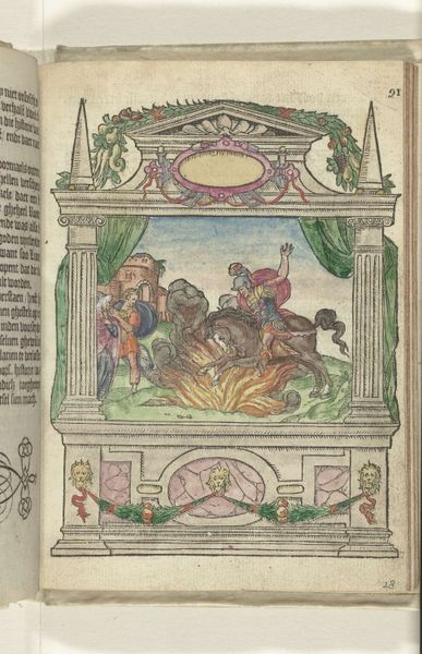Antoni van Leest created this print depicting an allegorical scene in 1578. It’s an image of a theatrical performance, a kind of play-within-a-print. The battle scene, with its clashing swords and fallen figures, may be referencing contemporary events or offering a moral lesson through historical allegory. Made in the Netherlands during a period of intense religious and political upheaval, this print speaks to the role of public art in shaping opinion. The Dutch Revolt against Spanish rule was in full swing, and visual media became a powerful tool for propaganda. The print may reflect the political climate of the time, possibly aligning with or critiquing the actors involved in the conflict. Was this play staged by local authorities to stir up anti-Spanish sentiment? Or was it a more nuanced commentary on the costs of war? Historical prints like this one are invaluable resources. They help us understand not only the artistic conventions of the time but also the complex interplay of social, political, and cultural forces that shaped artistic production.