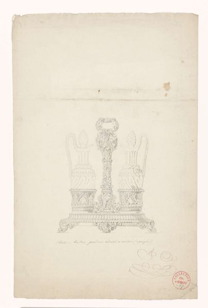 This is a drawing by Reinier Willem Petrus de Vries, made with pencil, of a cartouche in a rectangular frame. The grid in the background feels like a window into the artist's process. You can see how he builds up the composition, one line at a time. The drawing has a light touch, with delicate lines creating a sense of depth. The cartouche itself is ornate, with swirling shapes and patterns that seem to suggest classical motifs, yet there's a contemporary feel to it too, with its clean lines and almost minimalist aesthetic. Look at how the artist has used the pencil to create different textures. The soft shading around the cartouche contrasts with the sharper lines of the grid. It's like he's playing with different ways of seeing, inviting us to explore the image from multiple perspectives. This feels very reminiscent of the architectural drawings of someone like Piranesi. Both artists share a way of revealing the hidden structures beneath the surface. Both give you the sense that art isn't about fixed answers but about a continuous exploration of possibilities.