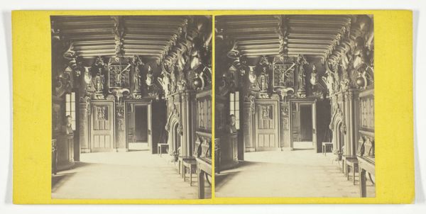 Editor: This is a gelatin-silver print from sometime between 1857 and 1863, by Athanase Clouzard, titled "View of the Manneken Pis in Brussels." The print itself is a stereo image. I can't help but think that the humor of this very small statue seems lost here, or perhaps emphasized by its austere architectural context. What strikes you? Curator: It is a fantastic starting point to reflect on the representation of marginalized bodies, and the political agency inherent in everyday acts, right? The "Manneken Pis," a seemingly innocent, even comical symbol, takes on deeper meaning when viewed through the lens of civic identity. Editor: How so? I guess I had never thought of it being “marginalized” but I can see how it might represent "the people," writ small. Curator: Think about it. The figure is defiant in its vulnerability, an exposure enacted publicly and explicitly in a way that disrupts bourgeois expectations. This fountain then challenges notions of respectability tied to class and behavior in 19th century Brussels. It also challenges a notion of national identity. Can a country be represented by this small boy making such an unabashed gesture? Editor: I didn't consider that connection to social disruption, but that's so interesting. It's almost punk, really, or at least proto-punk! Now I'm seeing a different kind of commentary! Curator: Exactly! Clouzard’s choice to capture this scene in early photography offers another layer of complexity. The then-novel medium, associated with scientific objectivity, here turns towards a cultural icon, elevating it. What might have motivated that association? Editor: Perhaps, as a documentary tool, early photography democratized the way this sort of symbol was disseminated and considered. It suddenly became portable, sharable, even collectible. Thank you! Curator: My pleasure. Hopefully this encourages you to ask these questions as you encounter other seemingly straightforward imagery!