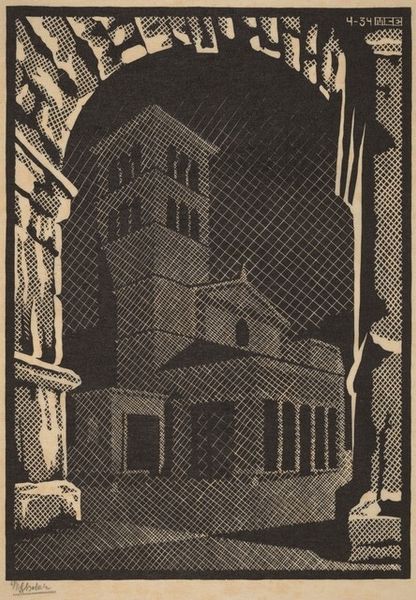 Editor: This is M.C. Escher's "Ancona (November 1936)," a black and white print from 1936. The architecture looks imposing, almost daunting, constructed through dense crosshatching. What’s your take on this piece? Curator: I'm immediately drawn to Escher’s printmaking process here. The meticulous labor required to create this image—think about the tools, the materials, the sheer time commitment! And look at the way the cross-hatching isn't just descriptive, it's constitutive. The lines don’t simply depict the buildings; they *form* them, calling attention to their material construction. Editor: So it's not just about the cityscape itself, but the labor embedded in its representation? Curator: Precisely. Consider the broader social context: it's 1936, and the world is grappling with the Depression. There is value, here, of representing not only architecture as static subject but its relationship to craft, skill, and time and labour invested in its manufacture through printing technologies. Escher seems acutely aware of how labor shapes not just buildings, but the very images we use to understand them. What do you make of the perspective? Editor: It's kind of a dizzying perspective, high up, and looking down, which contributes to the intimidating effect. Curator: Indeed, and how the perspective plays into this question of materiality and process. It invites the viewer to really contemplate the physical structure depicted *and* the art of building representation. Is this simply a representation of reality? No, rather, the image prompts questions of artifice, production and labor, and representation and its ideological implications. Editor: I never thought about perspective being related to labor and social class. That’s definitely changed how I see Escher's work! Curator: Absolutely, art doesn’t exist in a vacuum, after all! Everything that comprises it including materiality, geography, process and more influences how we read art and how we create it.