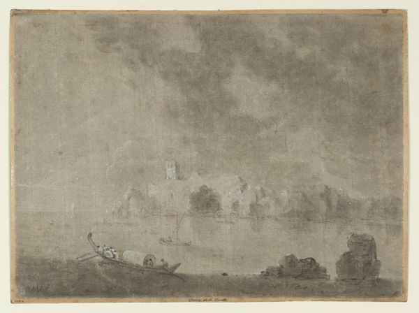 Curator: Willem Schellinks, likely sometime between 1637 and 1678, gifted us this drawing, "Italian Landscape," now held at the Rijksmuseum. What do you think? Editor: There is something haunting about this piece; the monochromatic greyscale renders everything into a dreamlike memory. Curator: Dreamlike is an interesting word here, considering the interplay between form and its delicate rendering through ink and pencil. Look at the strategic placement of the figures in relation to the landscape. Does that register? Editor: Absolutely. We see a detailed foreground depicting figures—likely workers—but they almost melt into the landscape rather than dominating it, inviting conversations around labor, landscape and power dynamics of the Dutch Golden Age. How do their lives compare to our contemporary precarity? Curator: Their arrangement directs the gaze towards the cityscape in the distance, carefully establishing a visual hierarchy. Note how the architecture provides points and anchors. Editor: Points and anchors yes, but consider who occupied those architectures? Power circulates visually but it is more than a composition trick, it shows that urban centres of power always rely on precarious labor forces working outside the periphery. How can the visual language prompt us to explore issues like class disparity that persist today? Curator: Undoubtedly, that is relevant; though I am intrigued by the stark tonal contrast achieved with minimal medium—creating depth where you sense a vast, sunny vista typical of idealized Italian settings. Editor: While I agree about its artistry, idealization needs interrogating. By focusing solely on aesthetics, do we risk ignoring the socio-political undertones? The very concept of an 'ideal' often excludes many voices, which calls attention to whose gaze informed this Dutch Golden Age vision. Curator: I see how the composition provokes these contextual analyses and lived questions and meanings. A pencil and ink drawing can hold such space for broad contemporary conversations! Editor: Precisely! That's what makes pieces like Schellinks’ landscape relevant and resilient – its invitation for discourse, and how each viewing reshapes the relationship to the world surrounding us, still.
