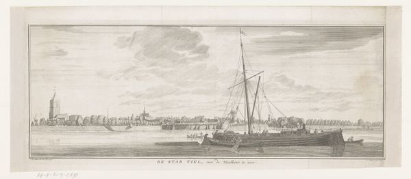 This engraving, "Gezicht op de Boompjes in Rotterdam," was created by Georg Michael Kurz in the 19th century. At first glance, you'll notice the image's meticulous lines and structured composition. The artist uses sharp, deliberate strokes to define the architectural elements and the bustling maritime scene. The waterway acts as a mirror, reflecting the city's structures and the sky above. The composition is carefully arranged to balance the natural and the man-made. The formal elements are arranged to convey a sense of order and perspective. The textures, achieved through varied engraving techniques, add depth. The work can be interpreted through structuralism, where the city’s organized layout reflects broader societal structures. Each element—the boats, buildings, and water—functions as a sign within a larger semiotic system, communicating ideas about commerce and urban life. Ultimately, Kurz's engraving captures Rotterdam as a structured, functioning system.