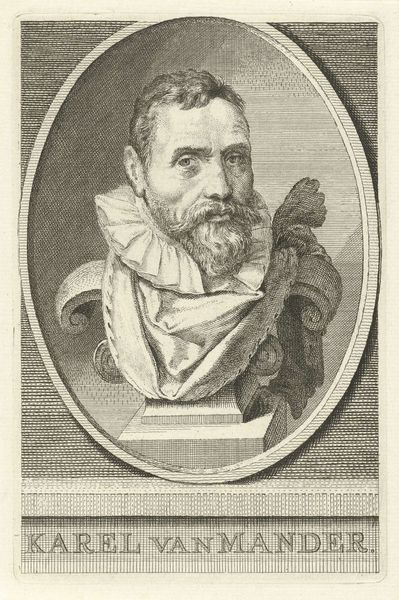 This is Andries Stock’s engraving of Karel van Mander, a Netherlandish painter and poet. The portrait is rich with symbols of artistic identity and intellectual pursuit. Notice the scroll he holds, inscribed, it seems, with text, an allusion to his literary achievements and humanistic scholarship. The gesture of holding a scroll is an ancient one, appearing in classical depictions of philosophers and scholars, signifying wisdom and learning. Consider how this motif echoes through time, from ancient Roman sculptures of orators to Renaissance portraits of intellectuals, each iteration imbuing the subject with an aura of knowledge and authority. The portrait serves as more than just a likeness; it’s a statement about the subject's place in the Republic of Letters. It embodies a potent blend of cultural memory and psychological projection, aiming to situate Van Mander within a lineage of great thinkers and creators. The recurring use of the scroll speaks volumes about how societies choose to remember and honor their cultural heroes.