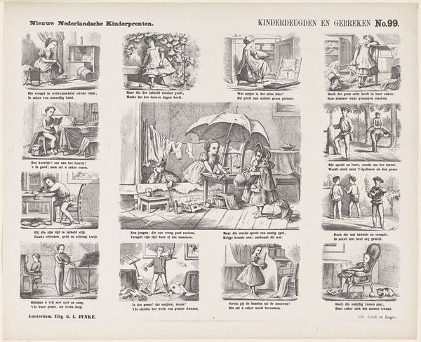 This amusing print, titled "Children's Virtues and Flaws," likely originated in the late 19th century. It presents a series of vignettes, each depicting a child embodying either a commendable trait or a regrettable vice. Consider the motif of the child diligently reading a book. This image echoes representations of scholars and saints from centuries past, symbolizing wisdom and piety. Yet, observe how its meaning shifts here, applied to a child, it reflects the values of a rising bourgeoisie and a growing emphasis on education and moral instruction. The visual language of childhood is particularly potent. Each gesture, from the studious child bent over a book to the mischievous boy scattering papers, evokes a deep, subconscious response. They tap into our collective memories of childhood, reminding us of the innocence, vulnerability, and the inherent potential for both good and ill that resides within each young soul. This enduring iconography demonstrates how the images of childhood, while rooted in a specific time and place, continue to resonate across generations.