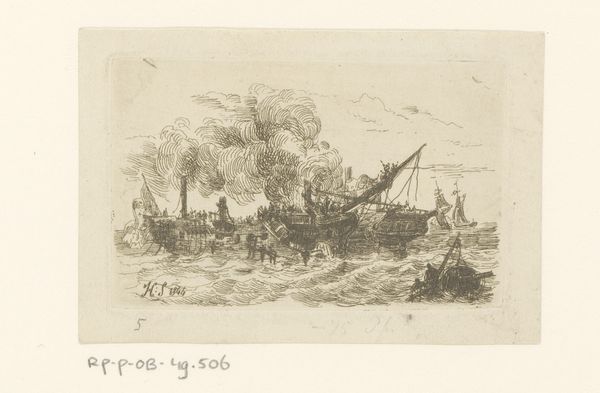 This engraving, titled "Zeeslag", presents a naval battle wrought in miniature, its anonymous creation capturing a moment of intense conflict. Dominating the scene are the warships engulfed in smoke and fire, symbols of destruction but also of power, recalling images of ancient naval conflicts immortalized in Roman friezes. Consider the recurring motif of the ship, which is not merely a vessel but an emblem of passage, exploration, and conquest. Throughout history, the ship appears as a symbol, from the mythical ships of the Argonauts to Viking longboats, evolving in form but retaining its fundamental association with human ambition and the crossing of boundaries. The chaotic scene evokes a primal sense of struggle, engaging viewers on a deep, subconscious level. This emotional power, ingrained in the image, is not merely a reflection of historical events, but rather a manifestation of collective memory and the eternal recurrence of conflict in human history. The cyclical progression of such symbols is a testament to the enduring power of the image. It resurfaces, evolves, and takes on new meanings, reflecting the complex interplay between past and present.