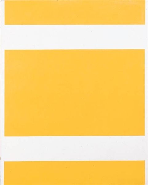 Ronald Davis made this piece, "Large Chartreuse," and I’m really interested in how he's handled this color. It's so pervasive, you almost don't notice the nuances at first, but they're there. The surface is super smooth, right? You can’t really see any brushstrokes or textures, which gives it this kind of calm, meditative feeling. It’s like looking at a still pool of water. I like how the chartreuse isn’t just one flat tone; there are subtle variations that make it feel alive. Like, maybe it’s reflecting light in different ways? It almost vibrates, right? The precise edges feel like they could be fabricated in a factory, a bit Pop Art, Warholian even. It reminds me of the hard-edged color field paintings by someone like Ellsworth Kelly, in that way it’s all about the shape and the color and not much else, but with Davis I sense he's also playing with illusionism, and with our perception of color. Ultimately it's about keeping the possibilities open, not nailed down.