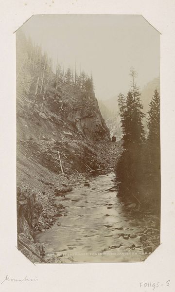 Curator: William Henry Jackson's "View Down the Blackwater from the 'Old Dobbins House'"—it's just soaked in this dusky, dreamy light. I feel like I'm peering into a memory. Editor: It's a silver gelatin print, isn't it? That process allowed for incredible detail, look at the sheer density of the forest. I wonder about the labor involved in accessing and documenting this landscape. Curator: Right? It’s almost tactile. And the way he’s layered the hills…it's like he's building a visual poem. I'm curious to know what the relationship was to the "Old Dobbins House". Editor: I am more interested in the means of production, of the chemical manipulation of light and silver. The social and economic forces that enabled Jackson’s expeditions are essential. Curator: But isn't there also something about the sheer mystery of that valley? It pulls you in, makes you want to get lost, or perhaps, become found. Editor: Found, how? This image seems less about discovery and more about the industrialization of landscape photography. I wonder about the ethics of representation. Curator: Still, the image evokes a certain nostalgia for that wild space, for something untouched. I guess for me, that’s its most compelling element. Editor: I see it as a product of specific materials, labor, and historical conditions. It's a document of a landscape transformed by the act of photographic capture.