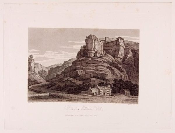 Editor: This is Johann Adolph Darnstedt's "View of the Highlands." The etching is so detailed, capturing this jagged landscape, but it feels…stark. What stands out to you? Curator: The starkness is precisely the point. Landscapes like this carry a profound weight. Consider the Romantic era; mountains represented the sublime, a confrontation with nature's overwhelming power. What emotions do you feel when viewing this image? Editor: A sense of awe, but also isolation. Curator: Precisely! That isolation speaks to a deeper human longing for connection with something greater. The Highlands become a mirror reflecting our own insignificance, and perhaps, our potential for transcendence. Editor: So, the landscape isn't just a place, but a symbol? That’s fascinating. Curator: Indeed. It's a symbol of our enduring quest for meaning in a vast, indifferent universe.