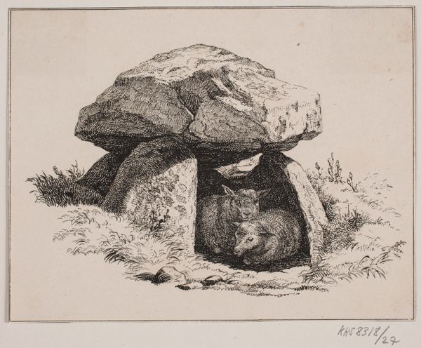This print, "Lammene," was made by Adolph Kittendorff in Denmark, though we cannot be sure when. It depicts two lambs nestled inside a prehistoric dolmen, a tomb made of large stones. Kittendorff was a landscape painter, but landscape in nineteenth-century Denmark was more than just pretty scenery; it was about national identity. After Denmark lost territory to Prussia in 1864, artists turned to the landscape and its history to define what it meant to be Danish. The dolmen, a relic of Denmark’s ancient past, would have been seen as a potent symbol of the nation’s deep roots. The lambs add an element of pastoral tranquility, perhaps meant to evoke a sense of timelessness and continuity. Analyzing art like this requires understanding the cultural and political context in which it was made, using sources like historical archives, publications, and other artworks from the same period. By studying these resources, we can understand the meaning of art as something that is contingent on social and institutional context.