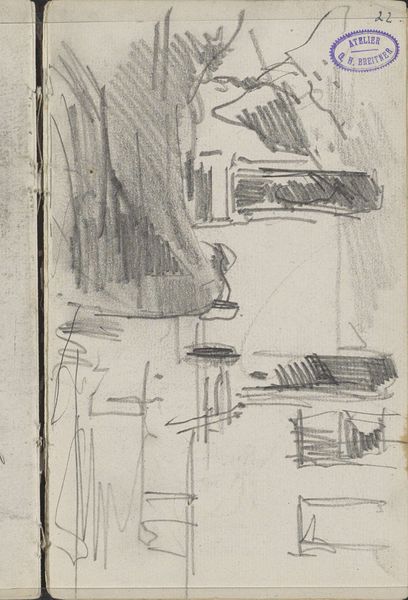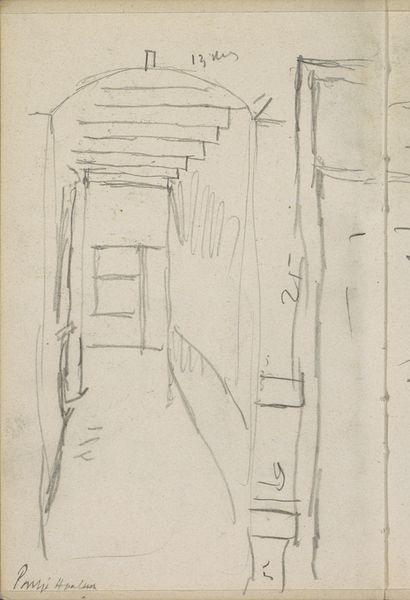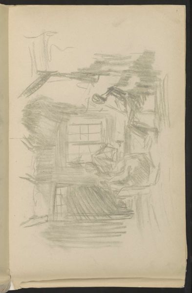 This sketch, Gezicht op de Nieuwe Teertuinen te Amsterdam, was made by George Hendrik Breitner with graphite on paper. It feels spontaneous, as if Breitner was trying to capture a fleeting impression, a moment in time. The texture of the paper is visible beneath the marks, and the varying pressure of the graphite creates a range of tonal values. Look at the way Breitner uses hatching to define the forms of the buildings, creating depth and shadow with a few simple strokes. There is a kind of directness to the work, an almost childlike approach. Notice how these sketchy lines feel more like a shorthand for the thing, rather than the thing itself. Breitner's approach reminds me of Philip Guston, especially his late work, where the forms are simplified and raw, and the process of making is evident in every mark. Ultimately, the beauty of this sketch lies in its simplicity and honesty, inviting us to contemplate the world around us with fresh eyes.