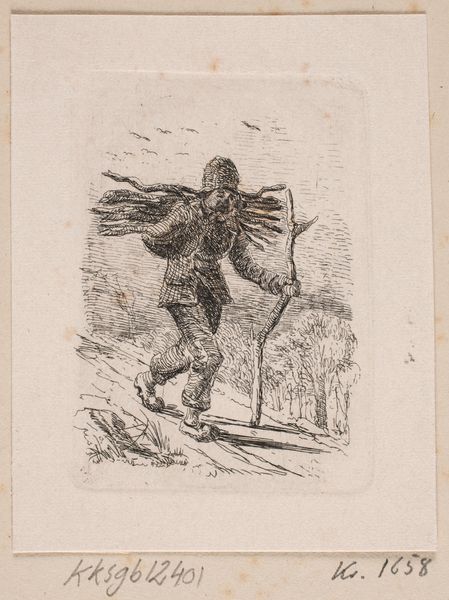 Giovanni Battista Bracelli made this etching as part of a series entitled "Bizzarie di varie Figure," or "Fanciful Figures," sometime around the 1620s in Italy. Bracelli's bizarre figures, constructed from everyday objects, question the very nature of representation and the artist's role. Is he a craftsman piecing together forms or a visionary conjuring new realities? This print presents a figure and a horse made of zig-zagging elements connected by what appear to be hinges, a possible commentary on the rigid social structures of his time. The strewn objects at their feet—shoes, spoons, and shells—suggest the remnants of daily life, now reconfigured into an absurd tableau. To fully appreciate Bracelli, we might delve into the social history of the print market in 17th-century Italy. How did artists like Bracelli navigate the patronage system, and what freedoms did printmaking afford them? Investigating these questions helps us see art as a product of its time, shaped by both the artist's vision and the world around them.