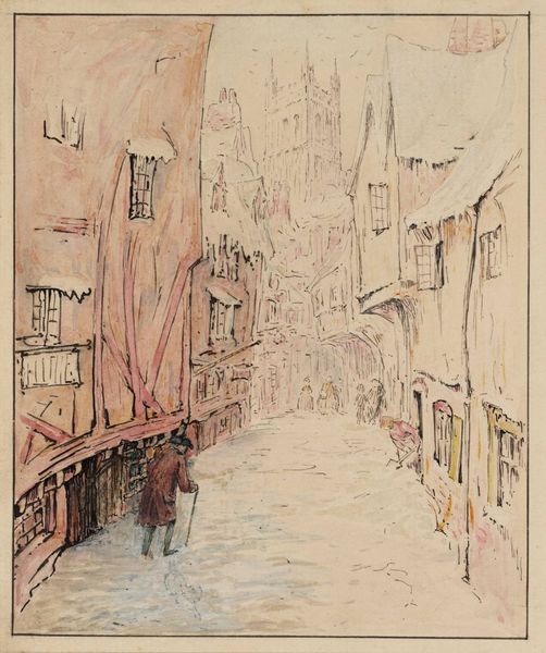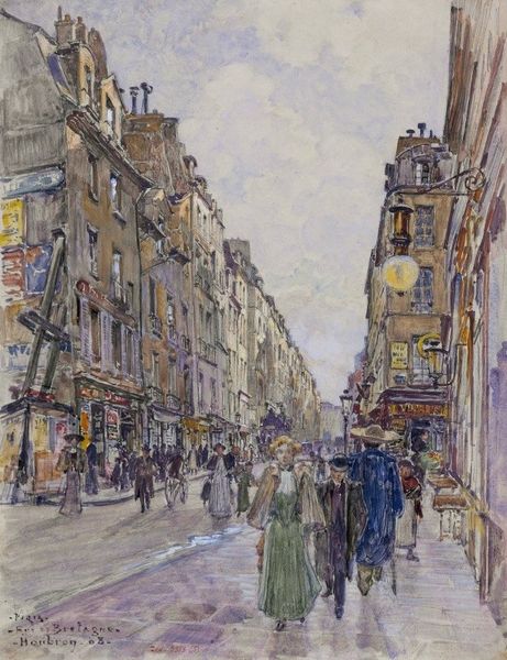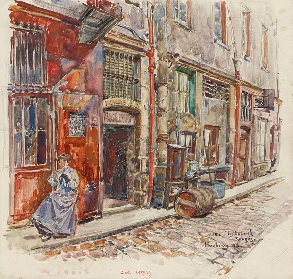 Camille Pissarro painted "Rue Damiette, Rouen" using watercolors and graphite, capturing a street in Rouen with figures walking along the sides. Pissarro, of Jewish-French heritage, often explored themes of identity and belonging in his work, reflecting his own experiences as an outsider. During a time of significant social change in France, Pissarro engaged with the rapid urbanization and its effect on everyday life, which comes through in this piece. The painting invites us to consider the lives of the figures depicted, who seem like ordinary working-class people going about their daily routines. Pissarro was quoted as saying: "It is not enough to see, you must feel." This emphasis on feeling is evident in the intimate and empathetic portrayal of the street. In capturing this street, Pissarro offers us a snapshot of a time and place, but it also encourages us to reflect on the social dynamics that shape our own experience. The painting reminds us that art can be a powerful tool for understanding and connecting with one another.