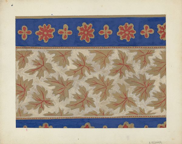 Curator: Here we have an interesting piece from between 1800 and 1900: an anonymous book cover adorned with an overall floral and dot design. Editor: It feels strangely both vibrant and subdued at the same time. All those dots give the design this very delicate texture that tempers the exuberance of the floral motifs. I’m also struck by how balanced it appears; it reminds me of damask or Toile. Curator: Its placement here in the Met certainly elevates a traditionally functional object to art. And its presence invites contemplation on how the book arts intersected with wider decorative movements, shaping popular taste. Editor: Right, because looking at the methods, I am immediately curious about how this design was achieved. The impressionistic application, likely involving some form of early textile printing or drawing technique. How much labour would have been involved in each individual cover? It seems hand-applied to me! Curator: Precisely! And in terms of social context, this would likely indicate a move to democratize beautiful books to be sold on a mass market. This kind of folk art starts showing up in mainstream places such as department stores! Editor: Definitely something in the means of its production is key. It sits between handmade and mechanically produced. Those slight variations in registration, if it is indeed a printed textile, that really show you something of the hands that would have touched this object, even if it were mass produced! Curator: It prompts a discussion of who decides what constitutes 'high art,' particularly in the context of the nineteenth century. Editor: Absolutely! It reminds me we should continually re-evaluate these rigid art/craft categories! Thinking materially and thinking historically opens things up. Curator: Indeed. Examining its social and historical role leads us to understand art's public presence and impact. Editor: Seeing it materially makes us realize that beauty has never been only the province of the elite!