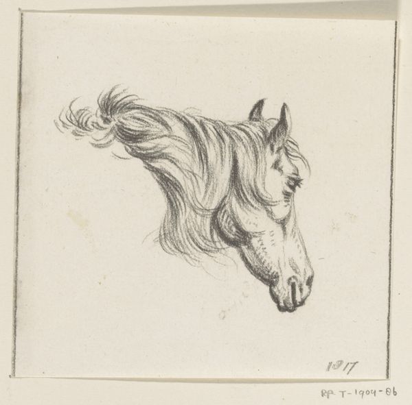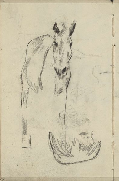 Leo Gestel made this untitled sketch of a resting horse with pen and ink. The stark contrast of black ink on the off-white paper gives the sketch a sense of immediacy and directness. Gestel's confident strokes capture the horse's form with minimal effort. The deliberate use of line weight and shading conveys depth and volume, turning a simple drawing into a dynamic representation. Drawing is often seen as a fundamental skill, a starting point for artists to explore and refine their ideas before moving on to more elaborate mediums. Gestel's sketch embraces this spirit of exploration, revealing the artist's process and the raw energy of his creative vision. In this context, the sketch is not just a preliminary study but a finished work.