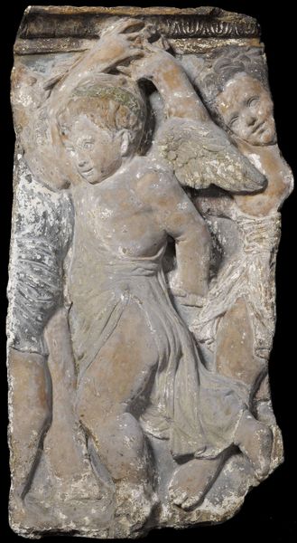 This is a plaster sculpture depicting The Shepherd Faustulus Carrying Romulus and Remus, made by Th. Stein in the late 19th century. The myth of Romulus and Remus is central to the foundation of Rome, and here we see them being rescued as infants. The image presents a fascinating intersection of classical mythology and 19th-century artistic values. The classical story is infused with the artist’s contemporary understanding of heroism and civic duty. Notice the attention to detail in the figures' anatomy and expression, reflecting the academic training prevalent in European art institutions of the time. The work invites us to reflect on how societies construct their identities through the selective retelling and reimagining of historical narratives. The choice of representing this particular moment of rescue, moreover, suggests an emphasis on the themes of providence and divine intervention in the making of a nation. To fully understand this sculpture, we can delve into the historical context of late 19th-century Europe. This includes examining the rise of nationalism, the revival of classical themes in art, and the role of institutions in shaping artistic production.