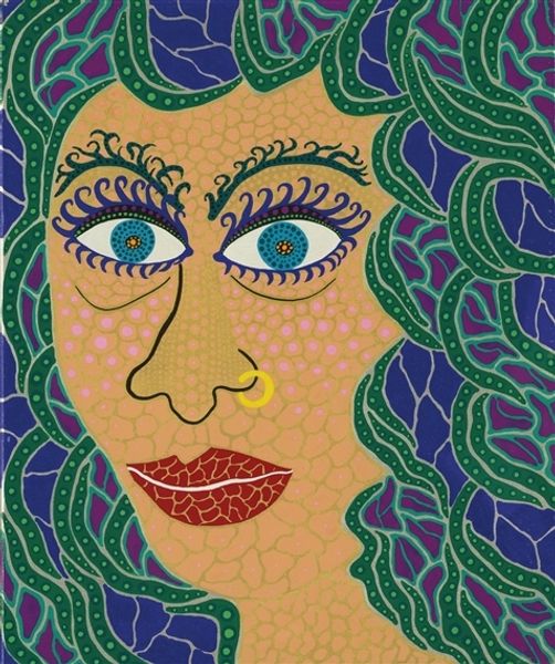 Erte's 'Queen of Sheba' is a striking image rendered with bold graphic simplicity. A dark silhouette of a regal figure is set against a light background. The composition relies on the interplay of flat planes of color and precisely delineated lines, creating a sense of stylized elegance. The restricted color palette is strategically deployed: gold highlights the hair, lips, and scattered stars, drawing attention to key features and contrasting with the figure’s solid black form. This contrast is not merely decorative; it engages with the symbolist tradition of evoking emotional and psychological depth through color. The artist utilizes a visual economy that echoes the ethos of Art Deco, favoring clear geometric forms over naturalistic representation. Ultimately, 'Queen of Sheba' is less about historical depiction and more about how form and color can articulate ideas of power, beauty, and otherness within a modernist framework. The visual reduction and stylistic exaggeration serves to explore the semiotics of representation itself.