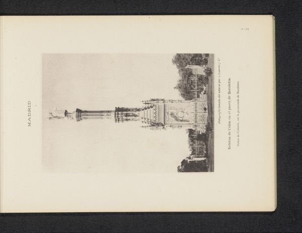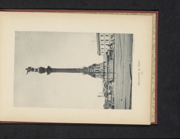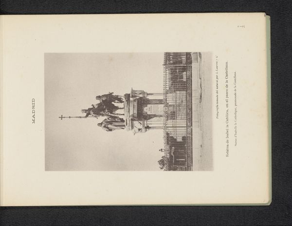 Curator: This gelatin silver print, created circa 1880-1890, captures a cityscape of Madrid. Juan Laurent's photograph frames the Monumento a los Héroes del Dos de Mayo on the Plaza de la Lealtad. Editor: It has such a quiet, almost mournful feel. The soft focus and monochromatic palette create a sense of distance, despite the monument's imposing size. Curator: Note the rigid geometry established by the obelisk, juxtaposed against the natural forms of the trees. There's a fascinating tension there. The vertical thrust of the monument is so resolute. Editor: Absolutely, and knowing its context amplifies that. This monument commemorates the 1808 uprising against French forces. It symbolizes resistance, and the photographic perspective seems to place the viewer almost in a submissive posture, looking upwards. There are people there on the scene. The photo itself maybe comments on how that resistance has changed, how it is commodified into tourism. Curator: I agree. Laurent meticulously composes the image, creating layers of depth. Consider how the placement of the monument is at a middle ground that is divided by planes, it demonstrates classical principles of balance and harmony. Editor: Beyond the formal qualities, the photograph serves as a historical document and tells stories of collective memory. How public spaces and monuments help reinforce a national identity or maybe contest other ones. Madrid wasn't just a place, it was also an ideal, and photography such as this played a key role. Curator: Indeed, Laurent's mastery of the photographic medium transforms stone into something transcendent, something beyond mere memorial. I like how he renders an urban setting as if it were a poetic landscape. Editor: Precisely, seeing this makes me question not only what is shown but how and for whom that representation was created. It's more than an aesthetic exercise, the photographer is mediating a story.