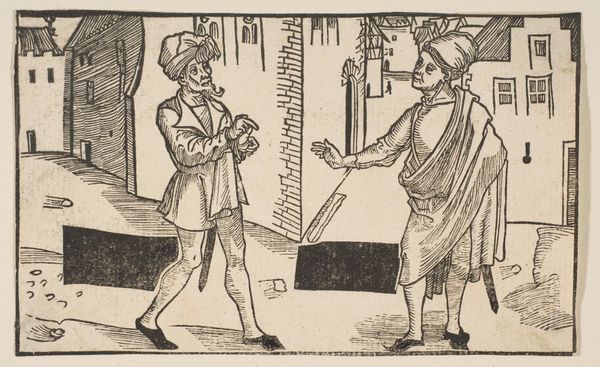 Ernst Ludwig Riepenhausen made this print, Habillemens de Leipzig, in Germany around 1785. It depicts two men standing, highlighting the fashions of Leipzig at the time. The image offers a snapshot of social hierarchy through clothing. The man on the left, with his sword and fashionable hat, displays the attire of the upper class. The man on the right, relying on a cane, is dressed in more practical, perhaps older-fashioned clothing. This was a time of strict social codes, and clothing was a key signifier of status. As historians, we examine such visual records alongside other sources – fashion plates, social commentaries, and economic data. These resources help us understand how clothing reflected and reinforced social structures in 18th-century Germany, a society on the cusp of significant political and economic change. This image, therefore, is not just about fashion; it's a document reflecting the complex interplay of status, identity, and social norms.