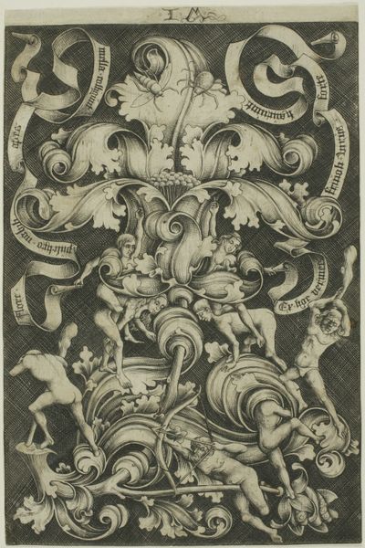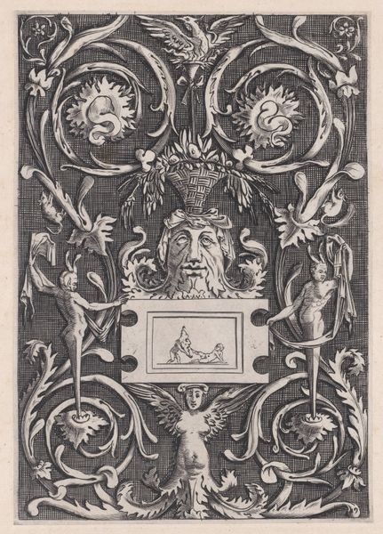 Editor: This is "Ornament with Mask, Eagle between Satyrs Below" by Heinrich Aldegrever, from 1549. It’s an engraving, so lines are very crisp and controlled, but overall the mood feels wild and grotesque, in a way. What do you see in this piece? Curator: It strikes me as a fascinating artifact of its time, steeped in the social and intellectual currents of the Northern Renaissance. The grotesque mask, flanked by satyrs, is not merely decorative. How does this imagery play into the anxieties and obsessions surrounding the body, the natural world, and the pagan past, at a time when the Reformation was dramatically reshaping Europe’s identity? Editor: I hadn’t thought about the Reformation! So these wild figures are…reactions to that? Curator: Perhaps veiled commentary. Renaissance artists often used classical and mythological imagery to critique or subvert contemporary social and religious norms. Note the precise, almost scientific rendering of details combined with the fantastical elements. How might that duality reflect the period’s shifting worldview, caught between empirical observation and lingering superstitions? Editor: So the artist is balancing different perspectives, but with the grotesque figures pushed forward? Almost a protest through design? Curator: Exactly! It hints at an undercurrent of resistance. Consider, too, the role of ornament during this era. Ornament wasn't simply about beauty; it was a visual language used to communicate power, status, and worldview. What might this print, intended for dissemination and reproduction, tell us about the values and beliefs the artist hoped to promote, or perhaps challenge? Editor: This really changes how I see ornament – it's not just pretty but also a kind of political statement, like graffiti almost! Curator: Precisely! It highlights how deeply entwined art is with the social, political, and intellectual forces of its time. Editor: This gives me a whole new perspective on Renaissance art; it seems much more alive and engaged with its context. Curator: Indeed, viewing art as a form of social commentary enriches our understanding of both the artwork and the society that produced it.