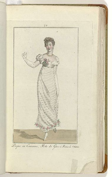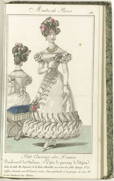 This fashion plate, made by Friedrich Ludwig Neubauer around 1806, depicts a Parisian "demi-parure" or semi-formal dress. Notice the delicate floral motifs adorning the bodice, echoed by the red blossoms in her hair – symbols of renewal and beauty, deeply rooted in the visual language of springtime festivals and fertility rites. The gesture of the figure holding a fan to her face has ancient roots as well. In classical antiquity, such concealment was used to signal modesty. We see echoes of this in Renaissance portraits, where veiled figures conveyed both mystery and virtue. Yet, observe how the context has shifted: in this era of salons and social gatherings, the fan becomes a playful tool of flirtation, a subtle dance between revelation and concealment. This image captures how symbols evolve, shaped by the currents of cultural memory and the ever-changing theater of human interaction.