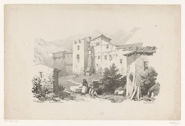 Elizabeth Murray created "Albenga on the Corniche (Costal) Road" using watercolour, a medium that lends itself to capturing the subtle gradations of light and atmosphere. The overall composition is arranged to draw the eye through a visual pathway, from the foreground figures to the distant, snow-capped mountains. The watercolor technique results in a light, airy feel, emphasizing the transparency and fluidity inherent in the medium. This allows for the depiction of depth and distance, contributing to a sense of spatial harmony and balance. Murray's use of layering and blending creates soft transitions between elements, avoiding harsh lines and allowing the forms to emerge gently. The interplay of light and shadow, achieved through delicate washes of color, enhances the three-dimensionality of the scene. Notice how the architectural structures are rendered with subtle variations in tone, suggesting their form and texture. This approach not only captures the physical aspects of the landscape but also imbues it with a contemplative, almost dreamlike quality. This is how Murray engages with perception and representation, questioning fixed meanings.