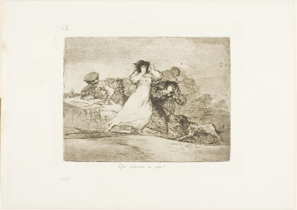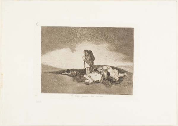 Francisco Goya created this print, titled "They Do Not Arrive in Time," using etching, drypoint, burin and burnisher. The Disasters of War series is not painting, but printmaking, an inherently reproducible medium. This allowed Goya's images to circulate widely, carrying his message of protest far beyond the elite circles of Spanish society. The stark contrasts of light and shadow, achieved through the painstaking process of etching and aquatint, heighten the emotional impact of the scene. Look closely and you can see the dense network of lines, each one bitten into the metal plate by acid, then inked and pressed onto paper. Goya bore witness to the atrocities of war, and through printmaking, he transformed personal experience into a universal statement about human suffering. The immediacy of the medium, the way it translates the artist's hand directly onto the page, creates a powerful connection between Goya and the viewer, across centuries of time. This underscores how prints can belong to both art and craft, conveying powerful messages about social issues such as labor, politics, and consumption.