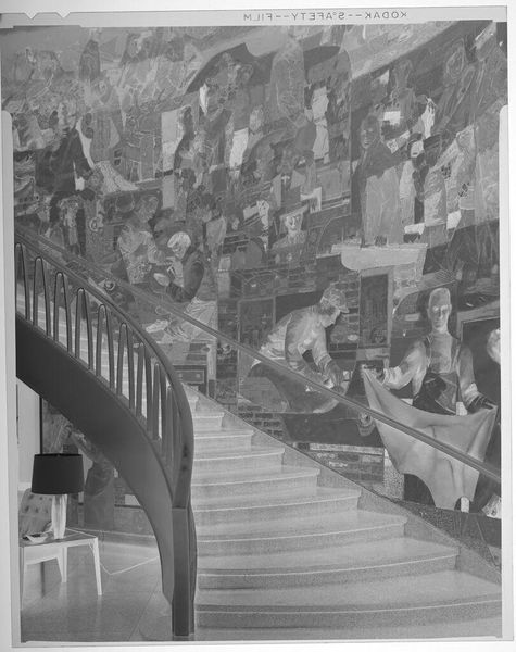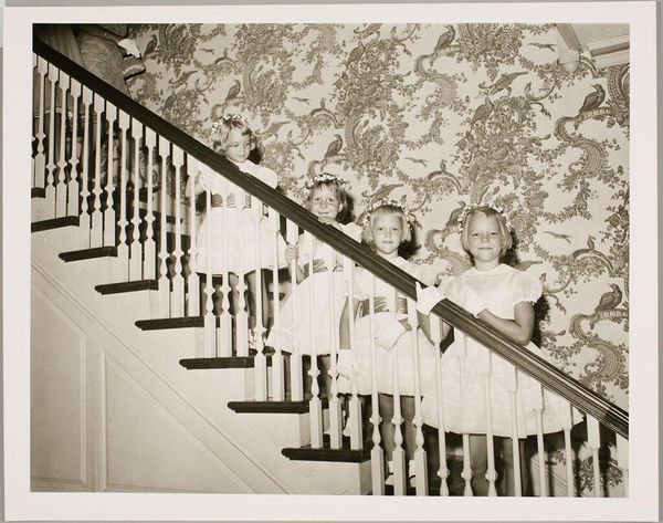 Curator: This photograph, titled "Untitled (snowy front steps of house)," was created by Lucian and Mary Brown. It presents a compelling image of domesticity. Editor: The stark contrast immediately grabs you. It's unsettling, yet the composition, focused on the geometry of the stairs, is captivating. Curator: Considering the social context of the time, this image challenges conventional depictions of family life. The figures are present but almost obscured, signaling potential anxieties around identity. Editor: I'm more drawn to the physical construction of the house itself – the brickwork, the stone accents. There's a tangible presence here, a record of labor and materials. Curator: Absolutely, and understanding the historical and cultural associations with homeownership further enriches our interpretation. Whose home is this, and what does it mean to them? Editor: To me, it is a moment of intersection—the fabricated versus the natural. Snow rests where people have built structure. Curator: I appreciate how you've highlighted the interplay between the constructed environment and nature. Editor: And you’ve made me think about how private and public intersect to reveal the tensions of that time. Thanks for the enlightening perspective.