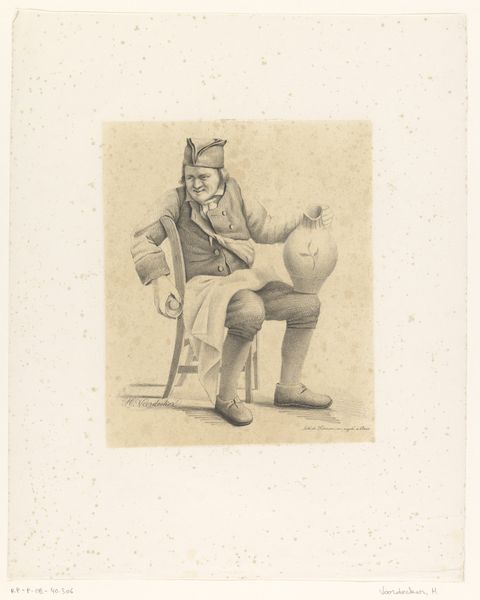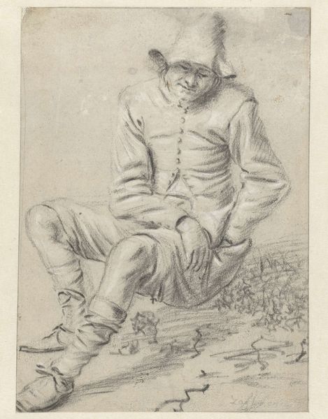 Felicien Rops made this print of a man wearing clogs on a stool, using etching, drypoint and soft-ground techniques. Look closely, and you'll notice the textures created by these processes. The drypoint creates a burr, a rough edge on the lines that holds extra ink, giving a velvety quality. This is very effective in the man's clothing, and the soft-ground etching yields a grainy, less defined area of shading. The combination lends a directness to the image, as if drawn from life. But consider also the social dimension: the man's clogs weren't just a fashion statement. They were practical footwear for working-class laborers in the fields. Rops has made many images of workers. In his time, printmaking itself was undergoing a transformation, with new technologies enabling mass production. So while Rops was using traditional skills, he was also very aware of how art could reflect and engage with broader social issues. Ultimately, the work encourages us to appreciate the skill involved in its making, and to think about the lives and labor it portrays.