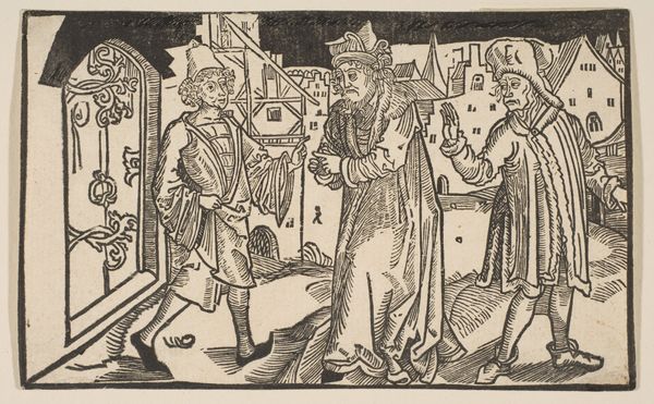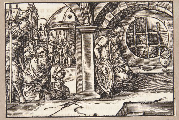 Curator: Let’s turn our attention to this striking print, Illustrations to Proverbs 10:1-3, made sometime between 1529 and 1539 by Daniel Hopfer. The combined engraving and woodcut medium speaks to experimentation in printmaking practices during the Northern Renaissance. What springs to mind when you first look at this piece? Editor: Chaos! But organized chaos, you know? It's teeming with tiny details, each little figure caught in their own drama. There’s something delightfully manic about the whole composition. It gives me a bit of an anxiety feeling but in a fascinating way. Curator: Right, let’s consider that. Hopfer's combination of engraving and woodcut wasn't merely aesthetic. It reflects the burgeoning print market and the demand for affordable imagery during the Reformation. Think about the labor involved: designing, cutting, and printing each section. It's quite an undertaking to translate such intricate detail. Editor: And to think of these moral lessons, right there in the home, shaping ideas through visual narrative. Do you think about the conversations it triggered? It's interesting, imagining the social impact of such a widely circulated image. I bet they sold them like crazy! Curator: Indeed! And speaking to the verses illustrated: wise sons gladdening their fathers, the futility of the godless's treasures, and the Lord nourishing the righteous. Editor: Look at how he's handled the light! Stark contrasts carve out each scene. It almost feels stage-lit, heightening the drama. Like these are little morality plays unfolding, these aren't static lessons. The devil in the middle scene particularly gets me! Curator: Exactly, and notice the textual annotations above each scene – reinforcing the verses for the literate viewer but providing additional guidance for the unlettered through familiar iconography and symbol usage that speak directly to class, status, and the production of knowledge within that cultural framework. Editor: Thinking about Hopfer himself, what personal message, what part of himself did he add to this? Or did he consider himself another cog within the media making of that era? Curator: It's tantalizing to wonder, isn't it? His blend of techniques alone suggests a desire to push boundaries, to find new ways of conveying meaning. The market-driven impulse doesn’t remove the fact that artists constantly refine the languages with which they make work! Editor: Right, I think my favorite aspect of that Northern Renaissance artwork is that the meaning isn’t fixed! And it's very easy to connect and associate. There is still so much to explore and discover… Curator: Precisely! Hopfer’s Proverbs encourage viewers to reconsider what these visuals really communicate with audiences of today, who receive meaning so much faster and readily, compared to its intended audience.